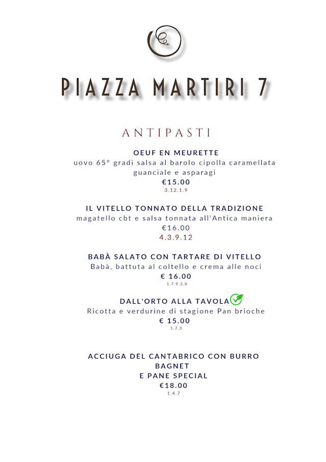 How is Piazza Martiri7 rated? Does Piazza Martiri7 have special offers currently? Can I reserve at Piazza Martiri7 right now? What type of cuisine is served at Piazza Martiri7? Is Piazza Martiri7 trendy? Is Piazza Martiri7 good to go to with friends? Is Piazza Martiri7 dog friendly?