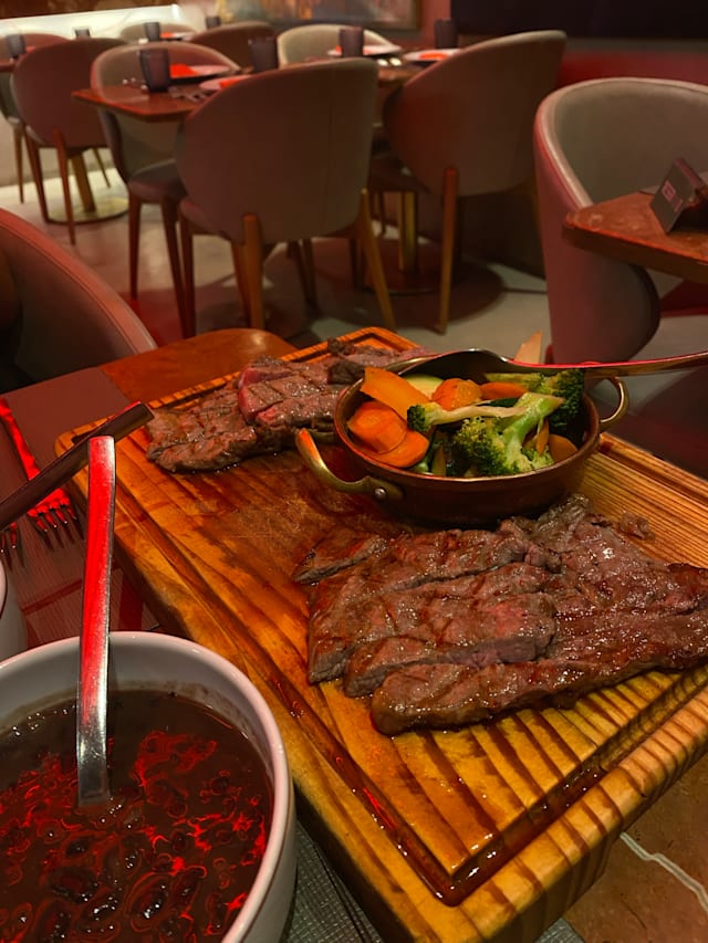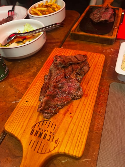 5/10A bit overhyped... we got sat outside, from the unconfortable chairs , to the extremely loud airplanes overhead, to the slow and unorganized service. Not great. I had the all-you-eat picanha, even tough asking for medium, most of it was completely raw. Not to be repeated by us. Not cheap and not great.