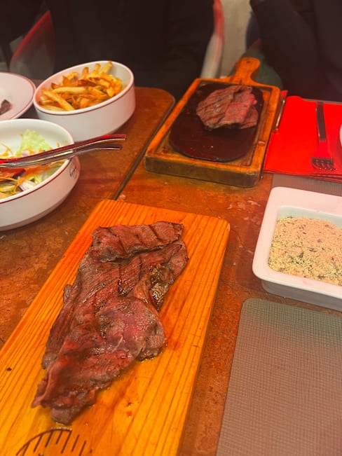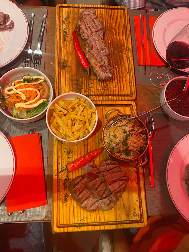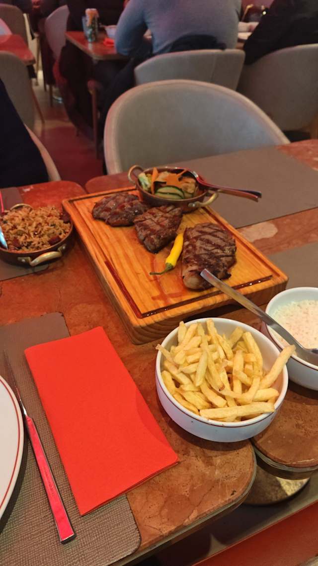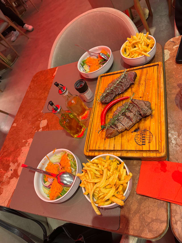 7.5/10Food quality is great, table display inside is messy, staff ended up doing weird moves to get to our table, something I have never experienced, they had no space to move around. We ordered fries 3 times, never arrived, had to ask twice for a coffeenand the meat was almost never cooked on the point we asked. Average restaurant, a little overpriced for the experience they provide.