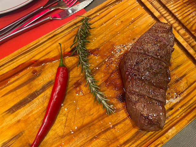 8/10A bit overpriced and too noisy inside but friendly staff and tasty food (we had picanha and wellington).
