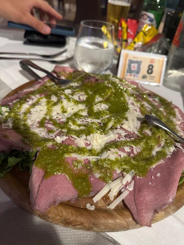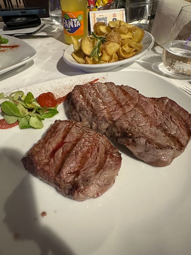 9.5/10I am so used to having amazing long meals in Italy. Dinner should be an experience. Unfortunately, throughout Italy right now and after Covid it’s more like America, sit down order eat, rush out. I am sad to say that I have not had great meals in Italy over the last two weeks, and I think my above statement is the reason why. Until last night, although the ambience was a little bit lacking, the staff and the food was amazing. I enjoyed meeting one of the owners, getting a tour of the kitchen and enjoying some of the most amazing steak I’ve had in a long time. When I’m back in Tropea, I fully intend to eat here more than once.