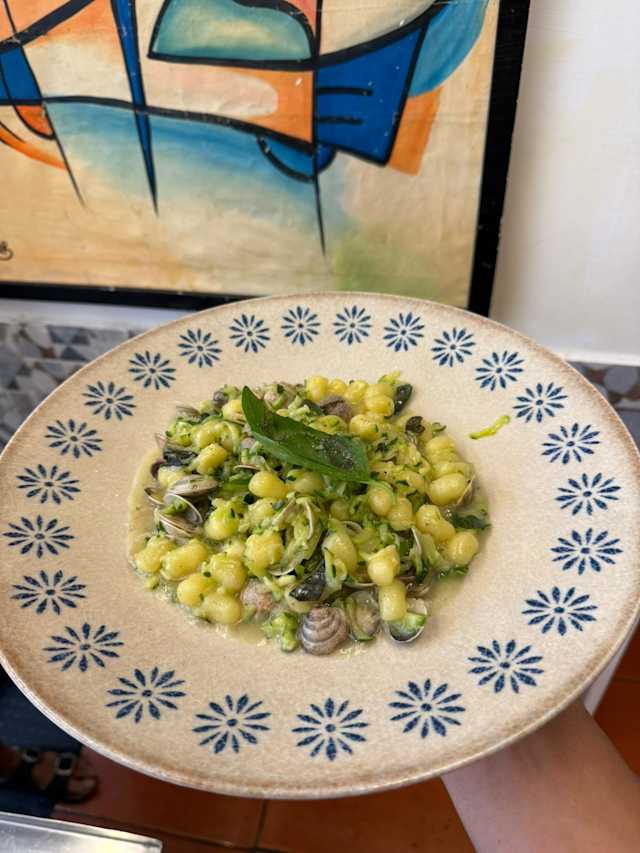 - Pomodorini, salsa, basilico, scaglie di parmigiano, olio