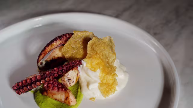 - Polpo, ceci, cardoncelli, lardo e lampone