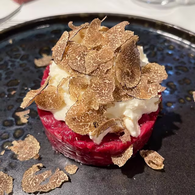 - Tartare di manzo dk con foam di parmigiano e tartufo
