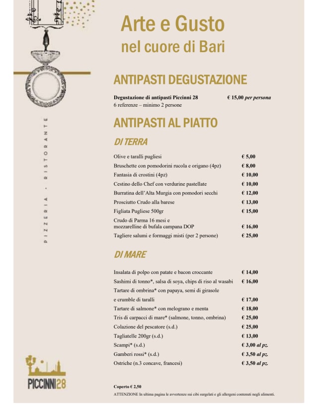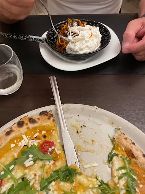 9.5/10Massive restaurant in centre of Bari. Full of people, but still good service and excellent food! We particularly enjoyed a mixed charcuterie and cheese plate to share then pizza and pasta main courses.