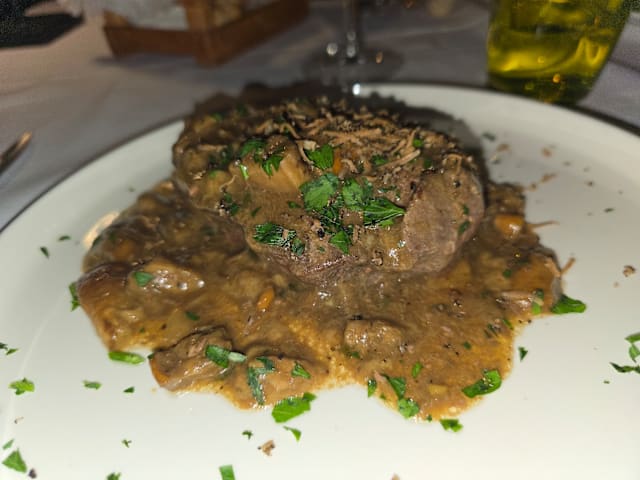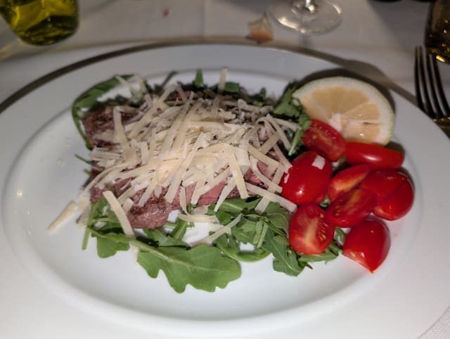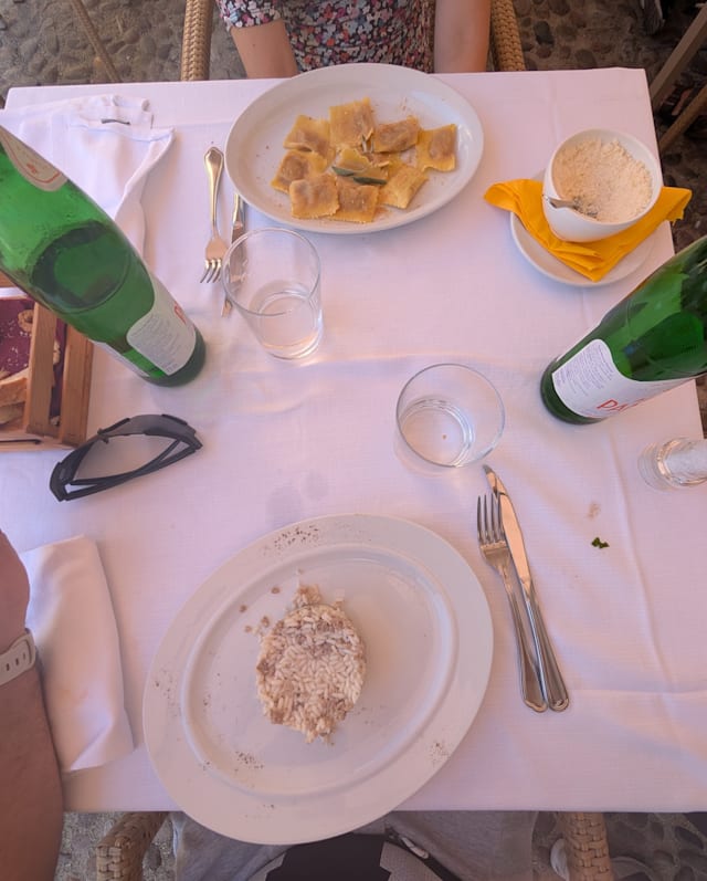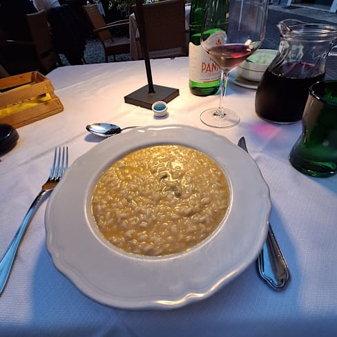 7.5/10Great location, you sit like in a dream outside on the piazza. Service was friendly. We had Bruschetta mediterrean as a starter which was okay but not great. Afterwards we chose Tortelli Zuccha and Orchiette with mussels and tomatoes. Both was again okay but we had several better options in the weeks before. Go here for the great location and enjoy good but not outstanding food.