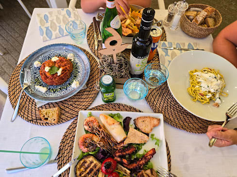 8.5/10Fantastic view of the sea, tasty grilled fish and a menu for kids.