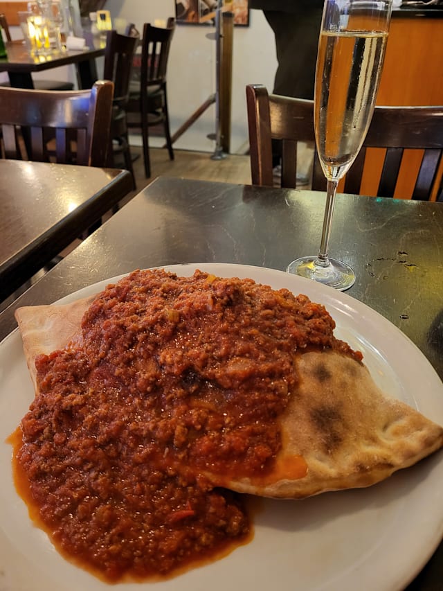 6/10the famous calzone was too heavy with veg and a very heavy meat sauce. not what one would expect in Italy