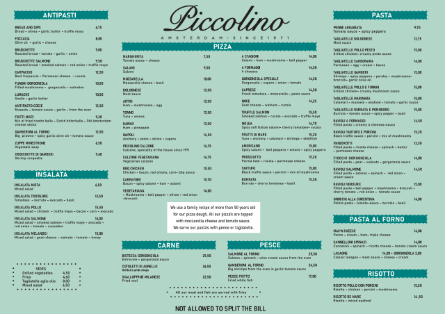 10/10Great restaurant with broad choice of Italian dishes from antipasti (starters) to pizza and pasta. I really recommend any past from oven or gorgonzola pizza, from starters I recommend bread or carpaccio. If you wish you can also enjoy good selection of desserts accompanied by limoncello or sgroppino. Children will be also happy with dishes and desserts dedicated for them. Service is very helpful and quick. You can it inside (ground level or basement) as well as outside if weather permits (there are heaters outside to warm you up while enjoying the restaurant). I advise you to make a booking upfront as it is busy area. The restaurant is located in vivid city center, close to Leidseplein. With good access from trams or bikes (with underground bike parking under Leidseplein). For many years I'm visiting the restaurant often. I really recommend it. It is worth to taste their pizza while being in Amsterdam center, alone or with family. Always good. See you there and "eet smakelijk".