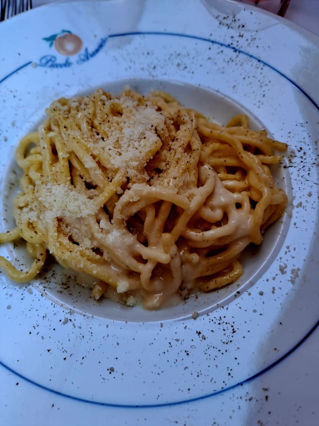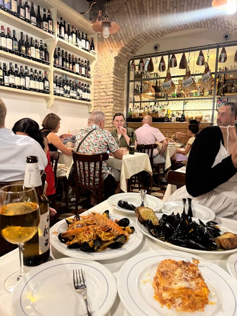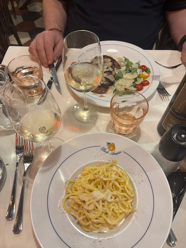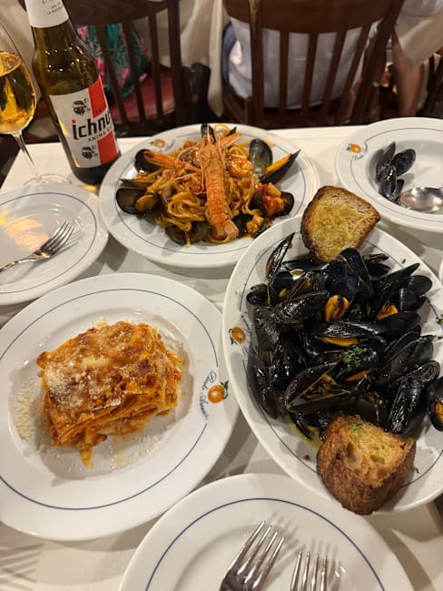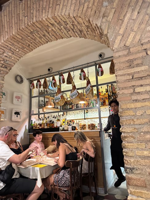 9.5/10Great service, good way above avg. waiter offer prosecco taste while eating for table. Arrive early for res. Place was packed. Down an alley but that’s normal. Great octopus, lamb, prosciuttoapp. Lasagna good. Fried artichoke just okay. Carbonara too aldendinte for my taste.