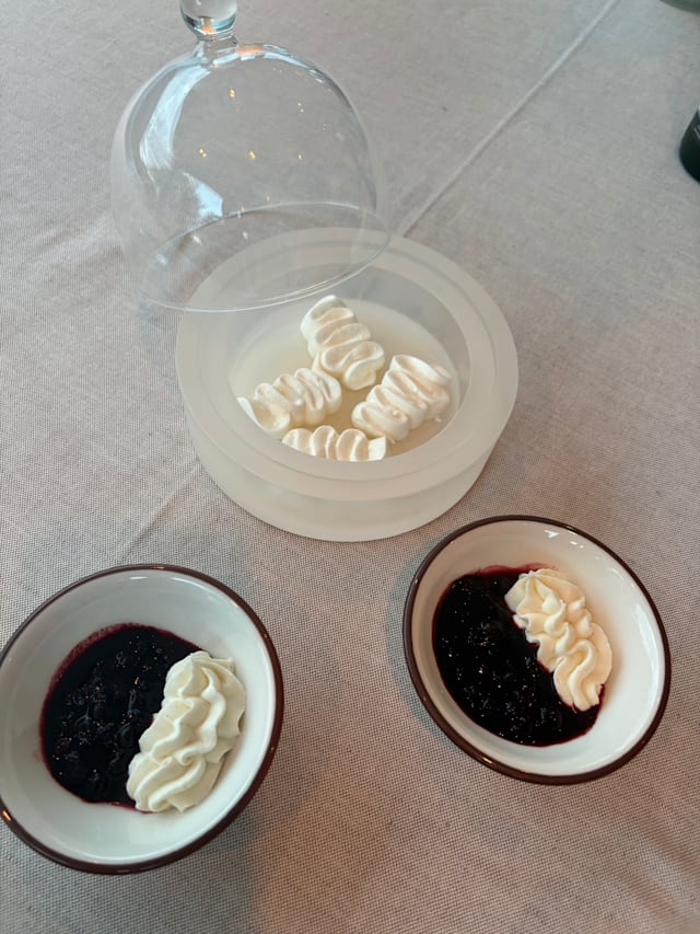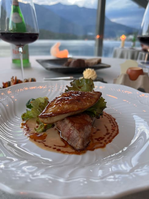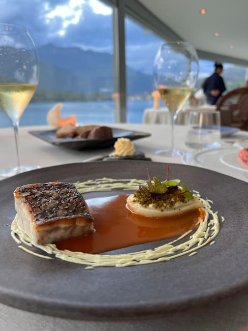 10/10We were very impressed with the restaurant from the moment we sat down at the corner table facing Mergozzo. What an incredible vista. The staff was always attentive, but not overly so, and their help with menu selection was key. We both went with their homage to dishes that had been created over past decades, and they easily obliged when my wife wanted to substitute for the eel, to which she has an aversion. They had us from the first plate, which was a smoked trout with excellent consistency, very interesting tastes, and a gorgeous presentation. I can’t go over all of the dishes, but will mention that highlights include the sauces surrounding the local cheese flan, the tenderness of the scampi, the flavour combinations with the eel (and its perfect cooking), as well as the character of the kid and it’s eggnog accompaniment. The only issue we had was with the chef’s surprise, which was a pasta served before the kid. We we’re having some difficulty getting through the quantity of food, so the pasta was too heavy for our liking. But the quality of everything was beyond reproach. We started with a champagne cocktail, and had two glasses of wine each to pair with the food. The sommelier did an excellent job of matching wines for us. Again, thank you to the very helpful and personable staff.
