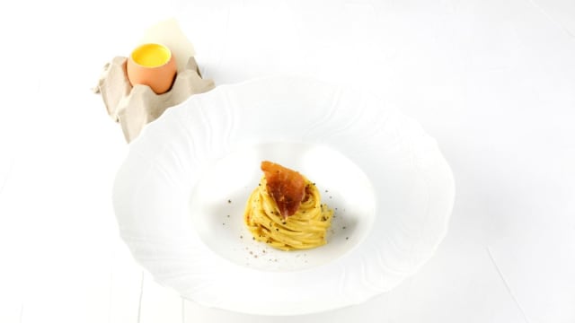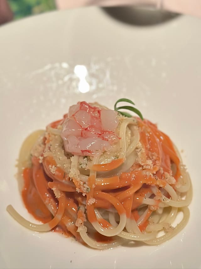 2/10Just crazy. The starter pasta was inferior to that from Antico Osteria in Intra, and to follow that we ordered the "lamb chop" as written on the menu in English. When we asked for it medium rare we were met with a stare, 'we can't do that'. Well, the portion arrived, I think 60 euros, and it was a 1 mm micro thin slice of crust burnt lamb, with gelatin on top, small mounds of apricot, with mini mint leaves on them. Someone forgot the chop. Lastly, after two of us were served three bottles of still water, and at the end of the meal, a fourth (750 ml) bottle arrived without being requested. Truly a disappointment all the way around, not to e repeated.