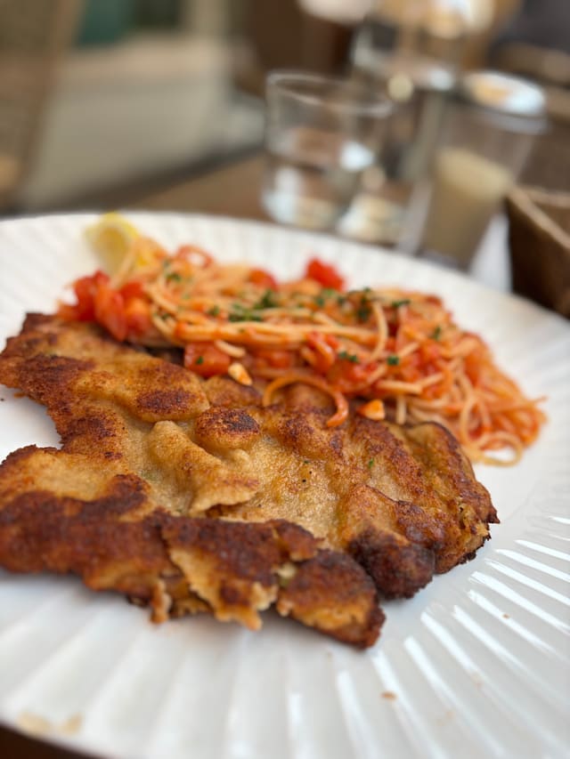 10/10Probably the best Italian meal I’ve ever had! I ordered the daurade and veggies. Incredible! My daughter had the Caesar salad which came on plate atop an edible bowl (seemingly the very light, toasty pizza crust type. It have very fresh, large, and savory Parmesan shavings and anchovy dressing was light and very lightly served which Is refreshing. Generous portions added to the excellent value of the flavor. Curious about the tablé olive oil… hooked! Wonderful table bread for dipping. Service was prompt, professional, timely.. only ordered entree items. Cappuccino was nice as well. Decor is easy to visit, friendly and stylish Italian contemporary with artsy touches even on the table settings. I’ll post photos if permitted. I’d go back again ;)