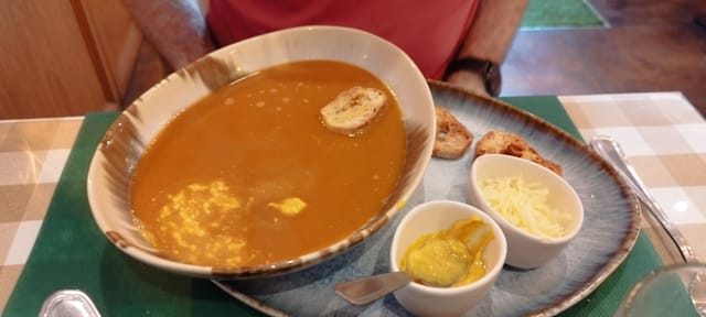5/10The waiter lied to us. He said service was not included. This is fairly unusual, so we asked to be sure "service non compris?". He said no. He went on to say we should leave 10% to 20%, extremely unusual for a waiter to suggest an amount. He then gave his game away by saying "what would you do in America?" Clearly he has some bias against Americans. When we looked at the bill, it clearly said at the top "Service Compris.". He just wanted to rip us off.