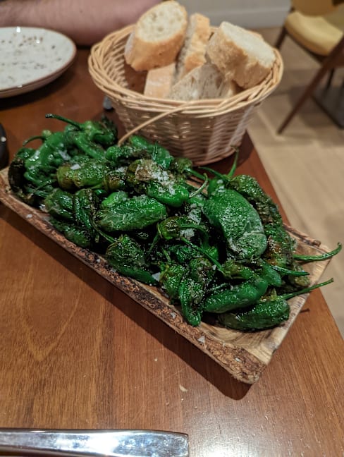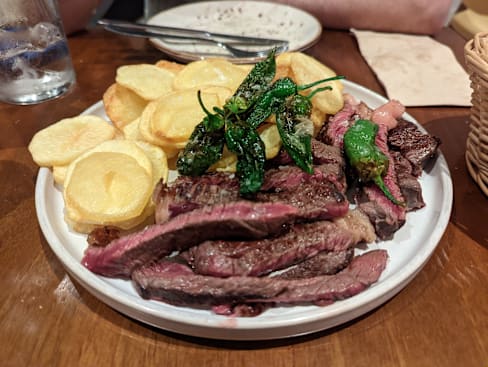 9.5/10We were early to eat by Spanish standards so only a few 5ables were occupied, but we were impressed by the menu and the service. It was nice to receive a complimentary hors doevres. We (3 adults) enjoyed padron peppers followed by picanha steak, large prawns and a seafood risotto. All meals were delicious and in generous portions. Wine by the glass was also good quality. With “The Fork” discount applied the meal was very reasonable- great value for money and great quality. The restaurant had filled up by the time we left and was buzzing, which we were pleased to see.