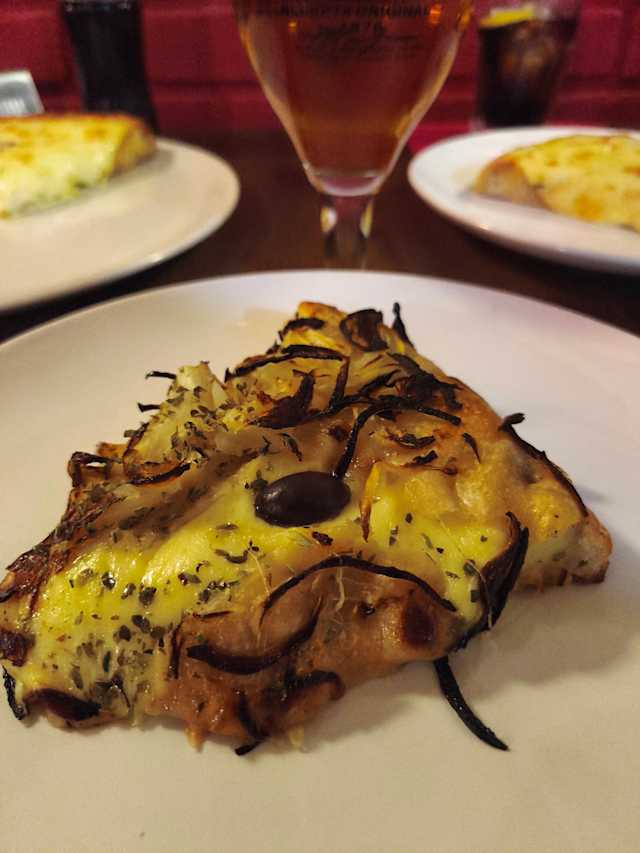 - Pizza farcida de formatge i coberta amb ceba
