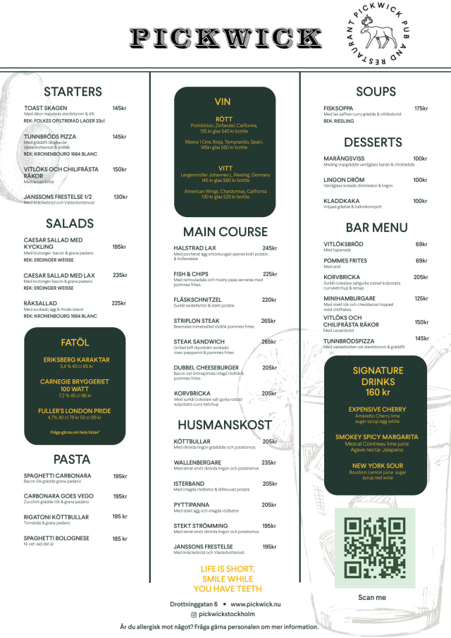 10/10Nice atmosphere…just like a pub in the UK, with traditional fare, along with a selection of Swedish favorites as well. Nice beer menu. Pleasant service.