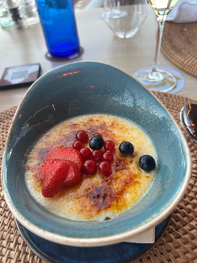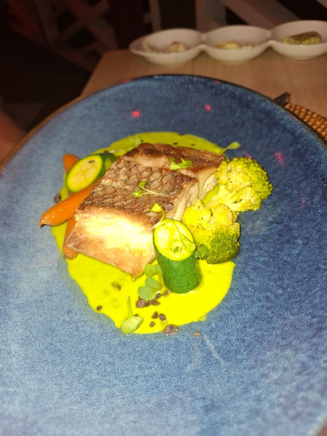 6/10We spent 25 minutes trying to find the place. There is an entrance from the street, but it’s closed and only for hotel guests, which made it difficult to locate. It would help to have a sign with clear directions there. The service was average. We ordered some starters, fish, and fruits, but everything was just okay. For the quality of the food, the price felt quite high. Overall, the experience didn’t match the expectations set by the photos we had seen before.
