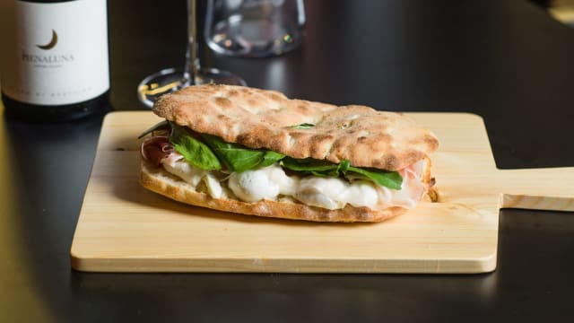 Mozzarella di bufala, prociutto crudo ruliano 24 mesi, rucola, scaglie di parmigiano vacche rosse