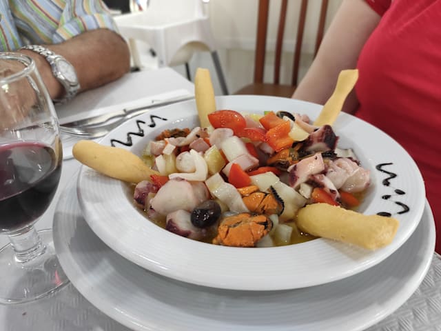 10/10Surprising experience. At first, me and my wife realized the big majority of people having dinner were male, so she felt a bit intimidated, until we saw one of the waiters was female, so we went in. No regrets. We ordered a soup of shellfishes for starter. It was delicious and in a considerable amount. For main dish, my wife ordered a merlusa, and I ordered a president, both fish dishes. We shared a bit. We also found both dishes good, well done, tasty, and in a considerable amount. For dessert we ordered chocolate cake. It was good, but a bit too sweety/fatty, I don't know about this one, it was still good but not as good as the other dishes. The environment was very large, very clean, with friendly and smily waiters. Only down side of environment, the entrance's very smelly of cigarettes. In summary, the only tip I could give for them to improve is that they could try to find a way to attract more diversified guests, and put some incense/candle in the entrance.