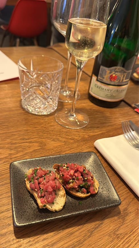 10/10We had the entrecôte and the magret de canard, which were both excellent. The steak is very rare, even with the searing technique, so I had to ask for mine to be cooked a bit longer. They took it back to the kitchen, no problem, and brought it back à point (medium). For dessert, the crème brûlée is light and delicious. My son loved the assortiment of 3 chocolate desserts. Wine by the glass from an Alsatian producer was disappointing (I tried the Riesling and the Pinot noir).
