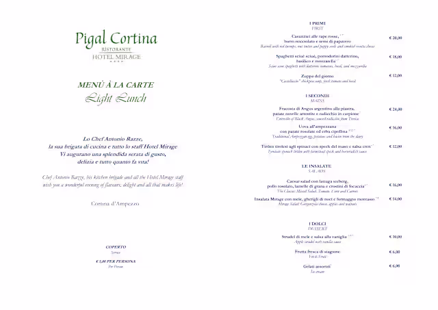 Benvenuti al Pigal Cortina, il Ristorante presso l’Hotel Mirage.
