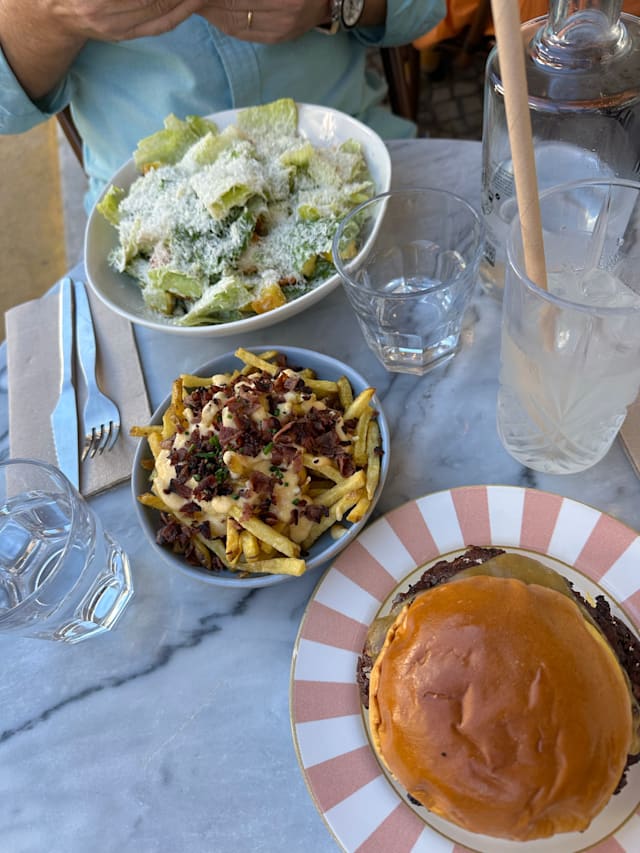 4.5/10staff very nice, specially Olivia, but the food was not good. meat was burnt, sweet potato fries were way too overcooked and mayo is charged 1€ per serving. we didn't know and ordered a lot.