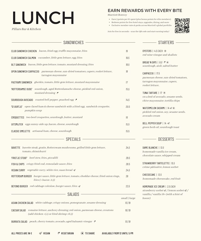 According to TheFork users, Pillars Bar & Kitchen is one of the trendiest restaurants in Rotterdam at the moment.