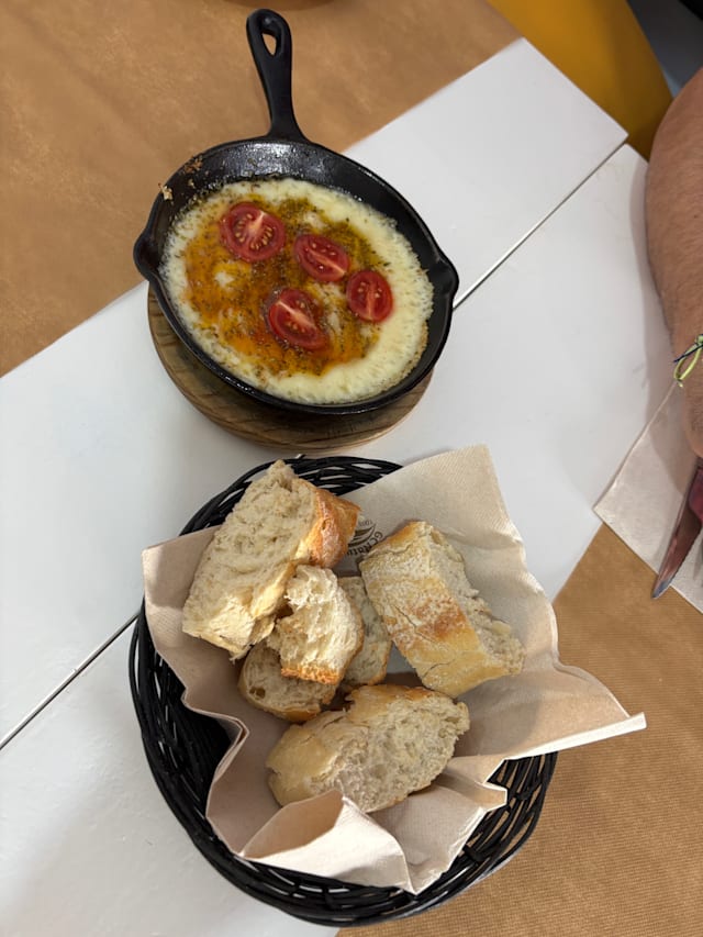 Queso de cabra, mozzarella con cebolla caramelizada a fuego lento