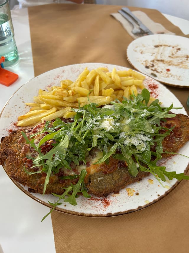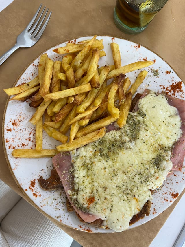 De pollo o ternera, con patatas fritas