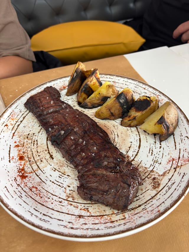 Entraña angus, salteado de cebolla, pimientos y especias de nuestra tradición