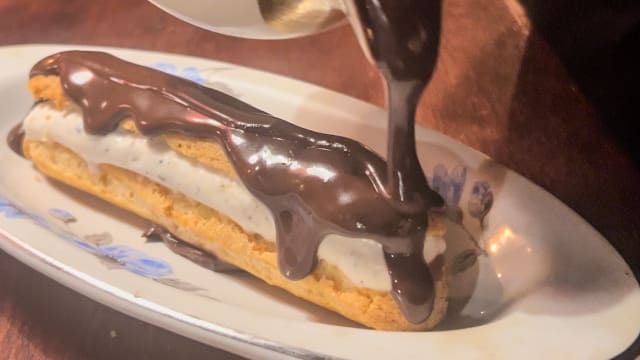 - Chou craquant, crème glacée vanille de madagascar, sauce chocolat chaud
