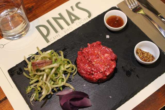 - Battuta di manzo su crema di zucca e petali di carciofi