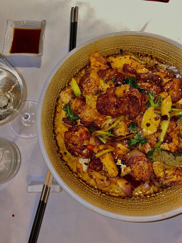 6/10I’m Chinese myself. This food was one of the most disappointing Chinese foods I’ve ever had. The eggplant was way too sour and salty as were the stir fry noodles. Sweet and sour pork was in small strings and overpowering in flavour which is far from traditional Chinese food. The portion was very small in foods and drinks - for the price and taste. The almond fish was made with butter and milk… again this is not Chinese. The service and atmosphere was very nice, very accommodating waiters.