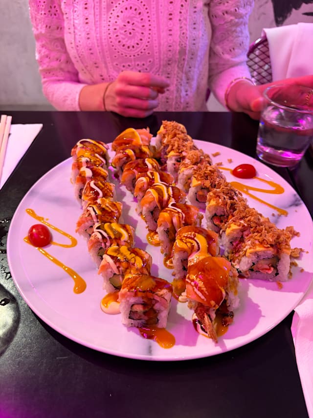 Hello Eric, Thank you for your fantastic review! We're delighted you enjoyed our generous sushi platter and crunchy roll. It's great to hear you took advantage of our discount too! Best regards, The Pink Fizz Team