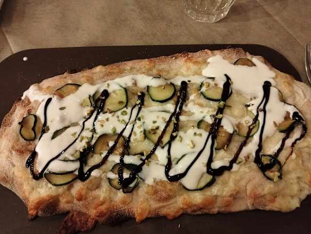 - Fior di latte, zucchine, fuori cottura: crema di stracchino , granella di pistacchi, glassa di aceto balsamico