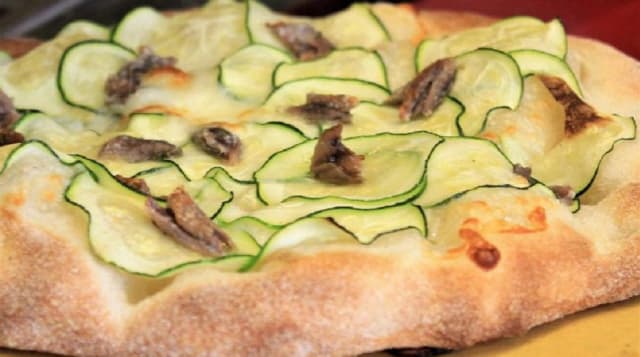 Mozzarella, pomodorini, cipolla di tropea, guanciale, pecorino romano, basilico