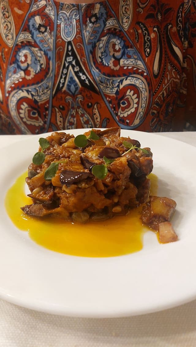 Raviolone rettangolare di grano duro ripieno di polpa di melanzane, pomodoro e ricotta salata