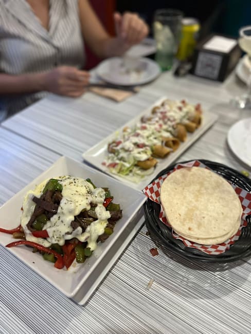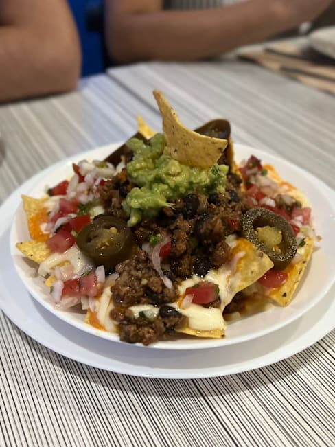 9/10+1Nos encanta!! The food is the nice because they taste like home-cooked Mexican food. THE BEST PART is the service. They are friendly, chat with us and bring us nice sauces. Here are the food we ate. - nachos has generous toppings and are crispy - fajitas has nice flavour with peppers and onions (will be perfect if the beef is less hard) - tacos is filled with chicken and toppings Portions are ok with the 50% discount. We will definitely be back!