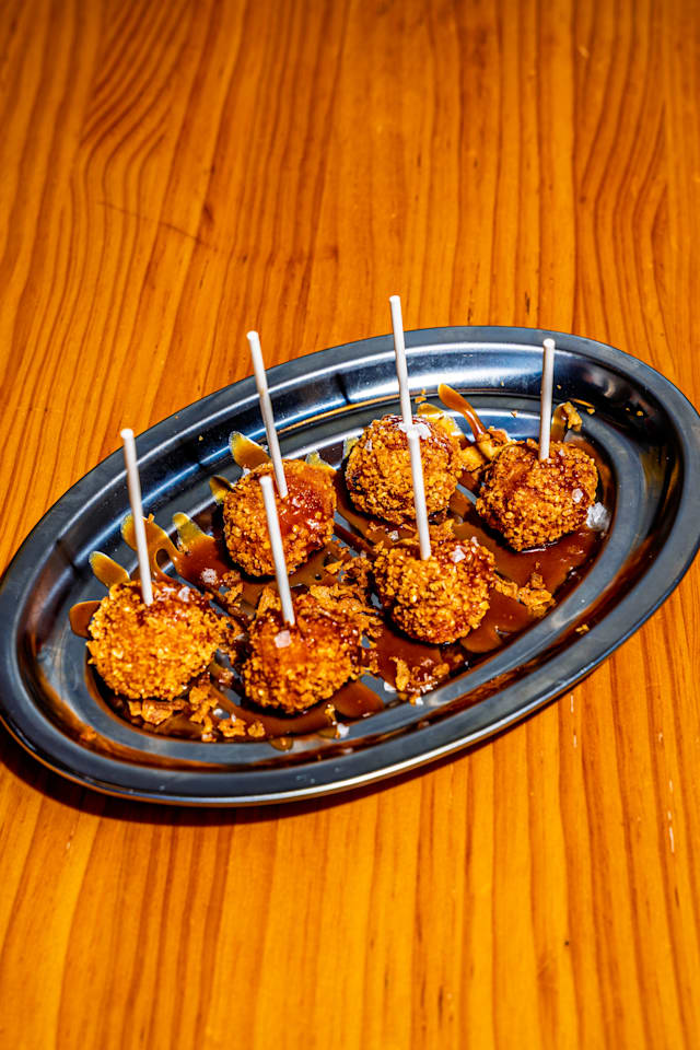 - Salsa asiática y crema de coco con topping de cebolla crunch y sésamo