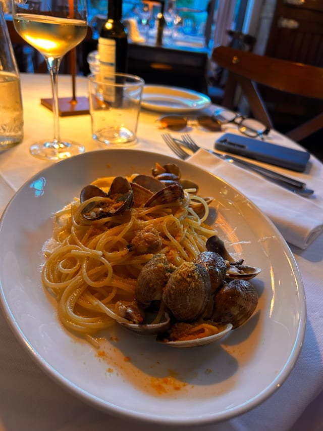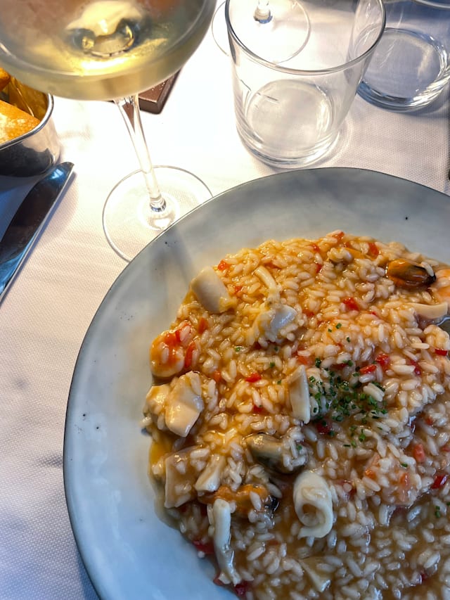 10/10relaxed setting outside. wonderful service. razor clams and fresh Seabass baked in a salt crust were delicious. prices were reasonable