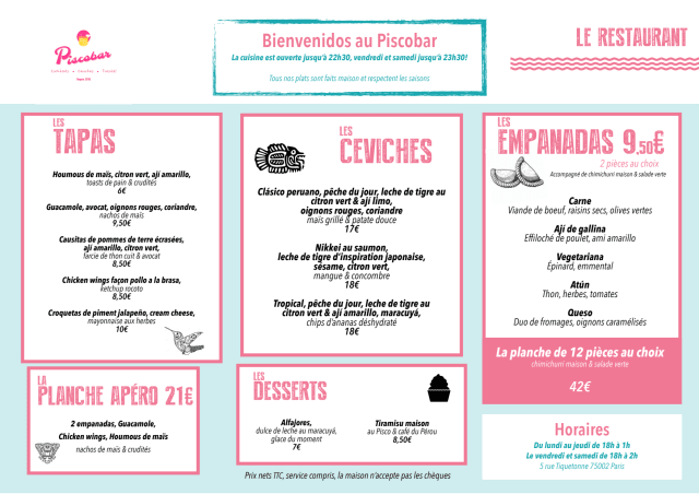 9/10+1For ceviche lovers, here’s a very good address! A very nice place at the heart of Paris that serves fresh ceviche, tasty, generous, mouthwatering and delicious. They have pisco too! The service is excellent and the staff very welcoming and friendly!