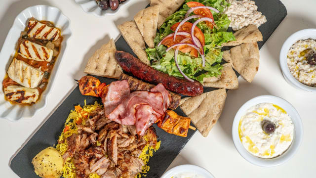 Com aromas cítrinos e orégano grego, acompanhado com molho tzatziki