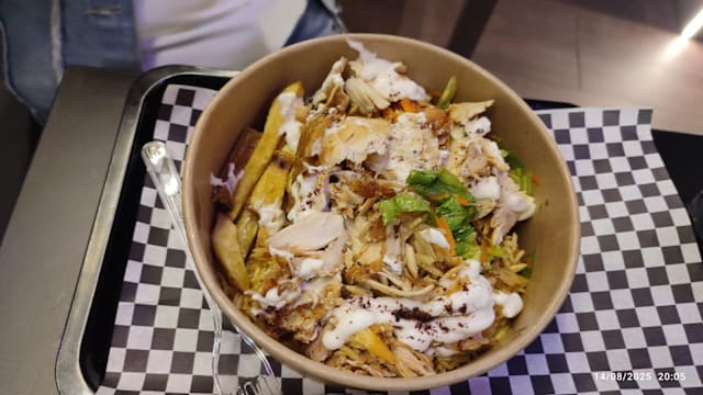 6.5/10expected much more tasty food. It was less tasty than the other shawarmas that I had before. it was OK anyway. also the portion, sause, ambient and other things, I had more expectation, I go with 6,5 or 7 out of 10