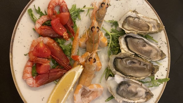 Crudo imperiale di “pitucawine”, 4 scampi, 4 ostriche “fin de claire n°3”, 2 gamberi rossi di mazara del vallo e tartare di tonno