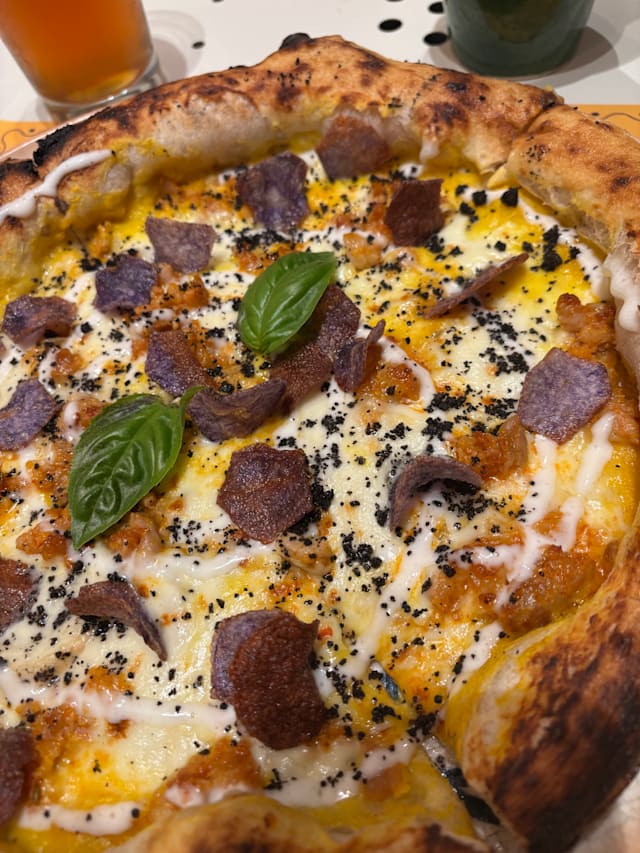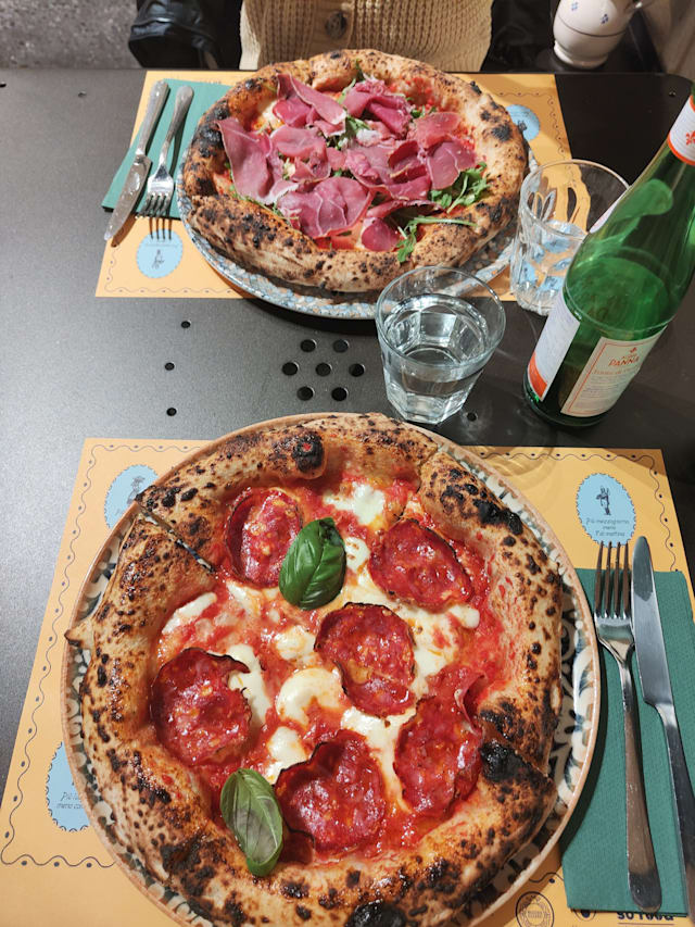 10/10From the moment we arrived, the atmosphere set the tone for a perfect evening. We started with a refreshing Campari and soda, the ideal aperitif to awaken the palate and transport us straight to Italy with its vibrant, bittersweet notes. Then came the pizza—a masterpiece of simplicity and flavor. The crust was perfectly crisp on the outside and airy on the inside, topped with the freshest ingredients that spoke for themselves. Every bite was a reminder of how beautiful authentic pizza can be when done right. To complete the experience, we paired our meal with a remarkable bottle of wine—smooth, rich, and perfectly matched to the meal. The balance of the flavors, the quality of the ingredients, and the care put into every detail made this dinner unforgettable. A true celebration of taste. We’ll definitely be coming back.