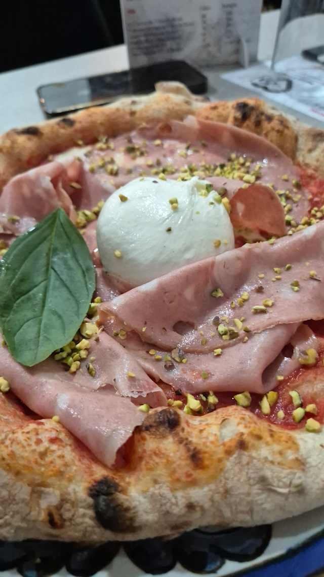 - Provola, salsiccia, funghi, pistacchi, olio extra vergine di oliva, basilico