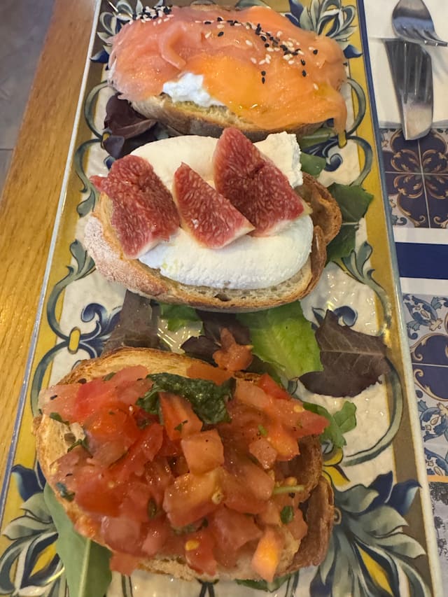 8/10Great pizzas. Flavorful and lots of choices. Crust was so good. Caprese salad was yummy. Service was poor. Inattentive (unengaged, unwelcoming) and forgot food items we ordered. But, a lively atmosphere with vibrant decor and good people watching inside.