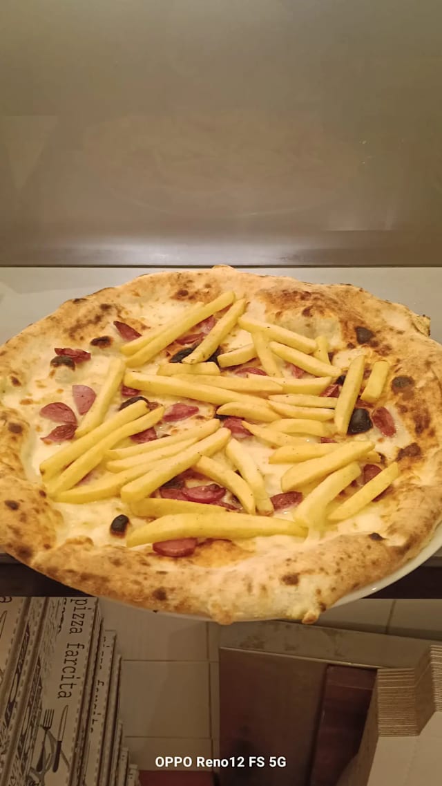 Provola affumicata di agerola, frigiarelli e salsiccia, parmigiano, basilico fresco, olio evo