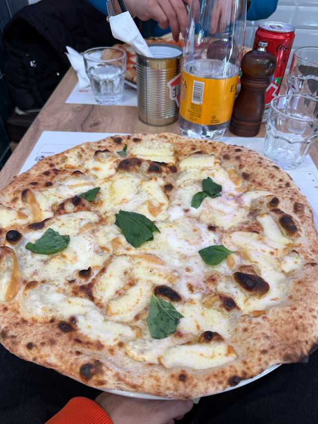 - Crema di grana padano, fior di latte, provola, zola, stracciata, miele, basilico